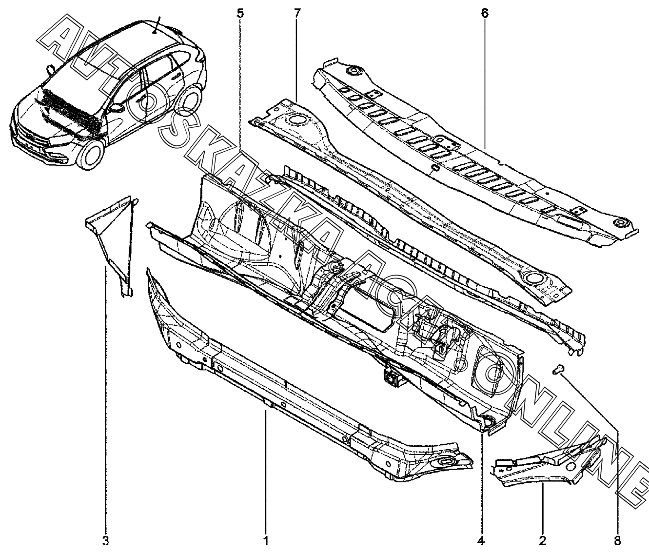| Название детали: | Панель нижней поперечины ветрового окна |