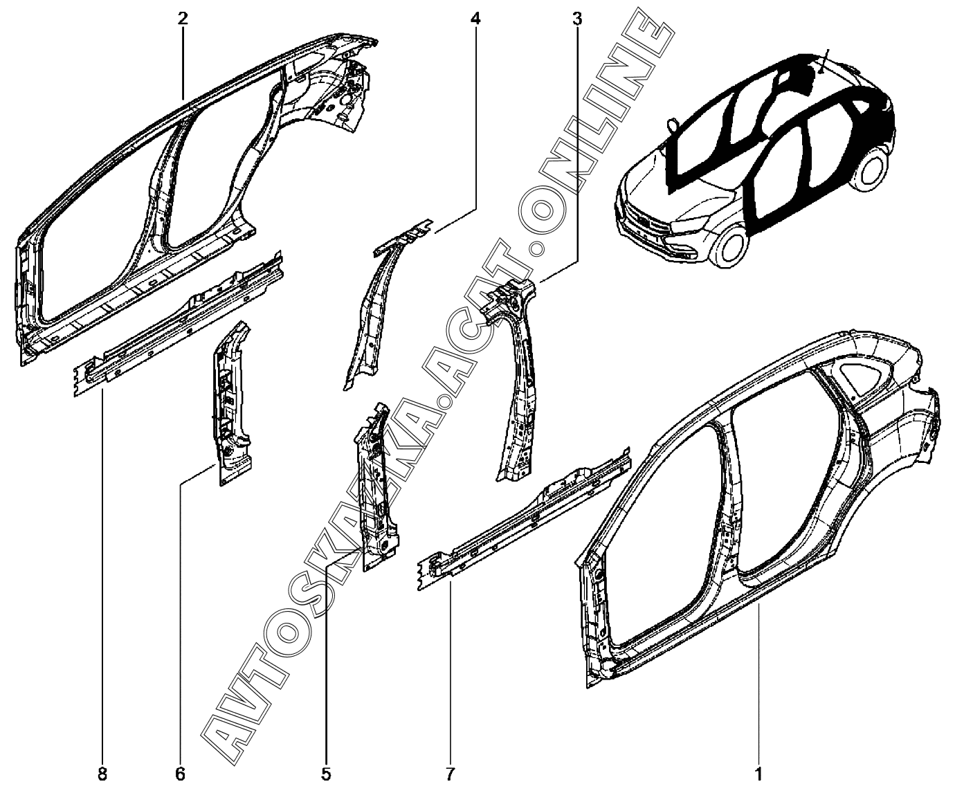| Название детали: | Боковина кузова правая |
