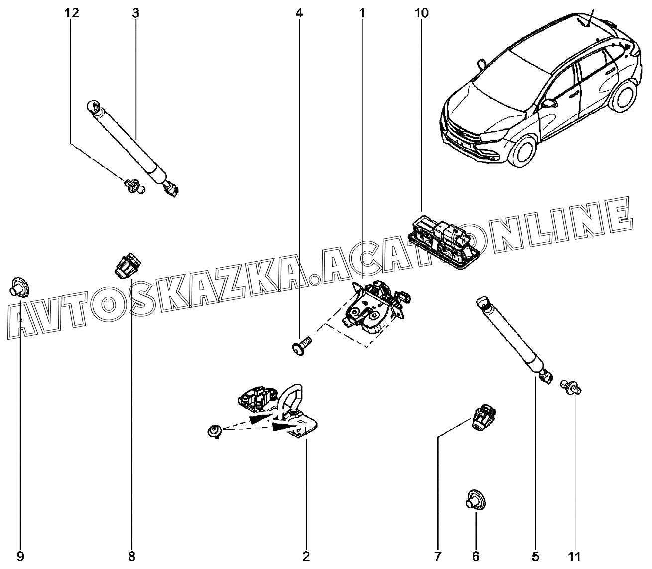Упоры, замок крышки багажника ВАЗ XRAY (Lada XRAY (хэтчбек, CROSS))