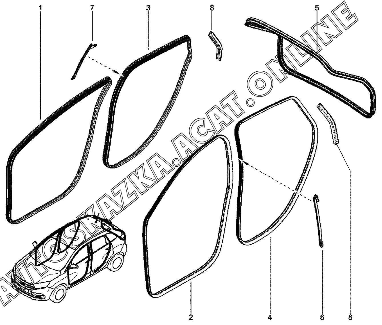 Уплотнители дверей ВАЗ XRAY (Lada XRAY (хэтчбек, CROSS))