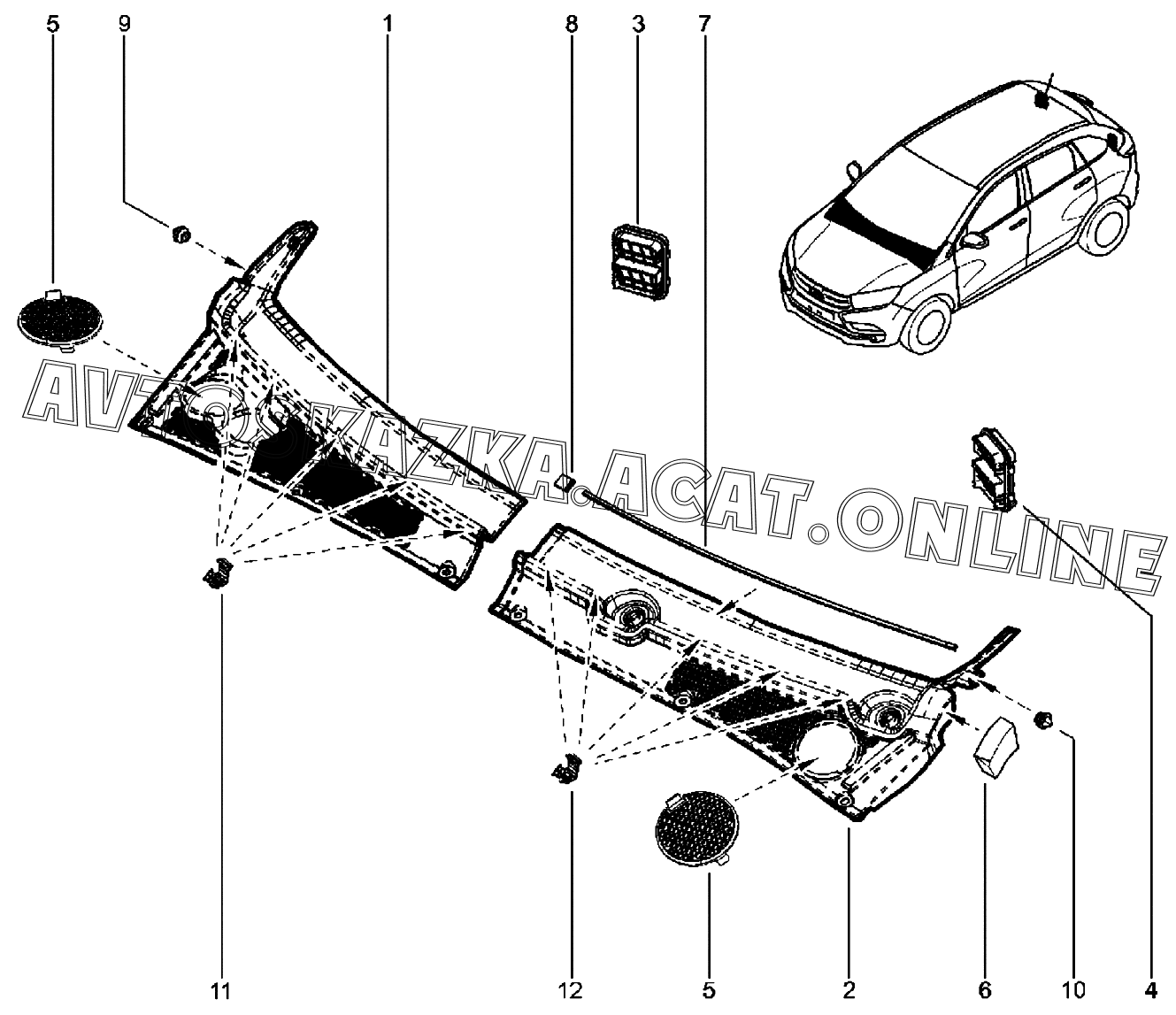 Решетка накладки ветрового окна, дефлекторы ВАЗ XRAY (Lada XRAY (хэтчбек, CROSS))