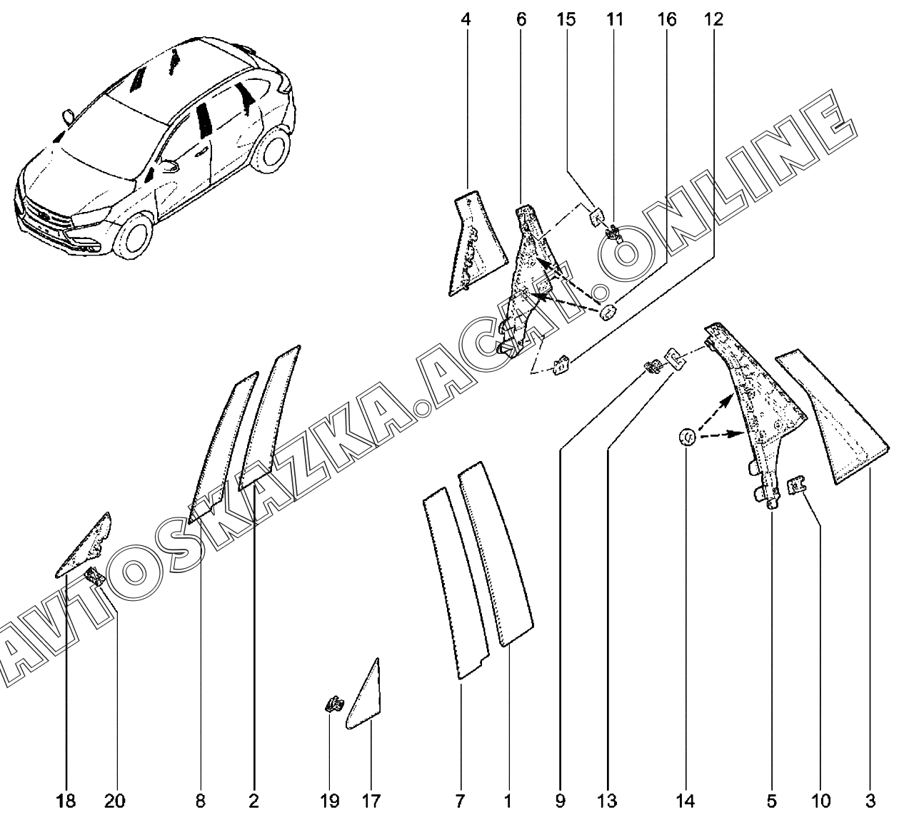 Накладки стоек дверей ВАЗ XRAY (Lada XRAY (хэтчбек, CROSS))