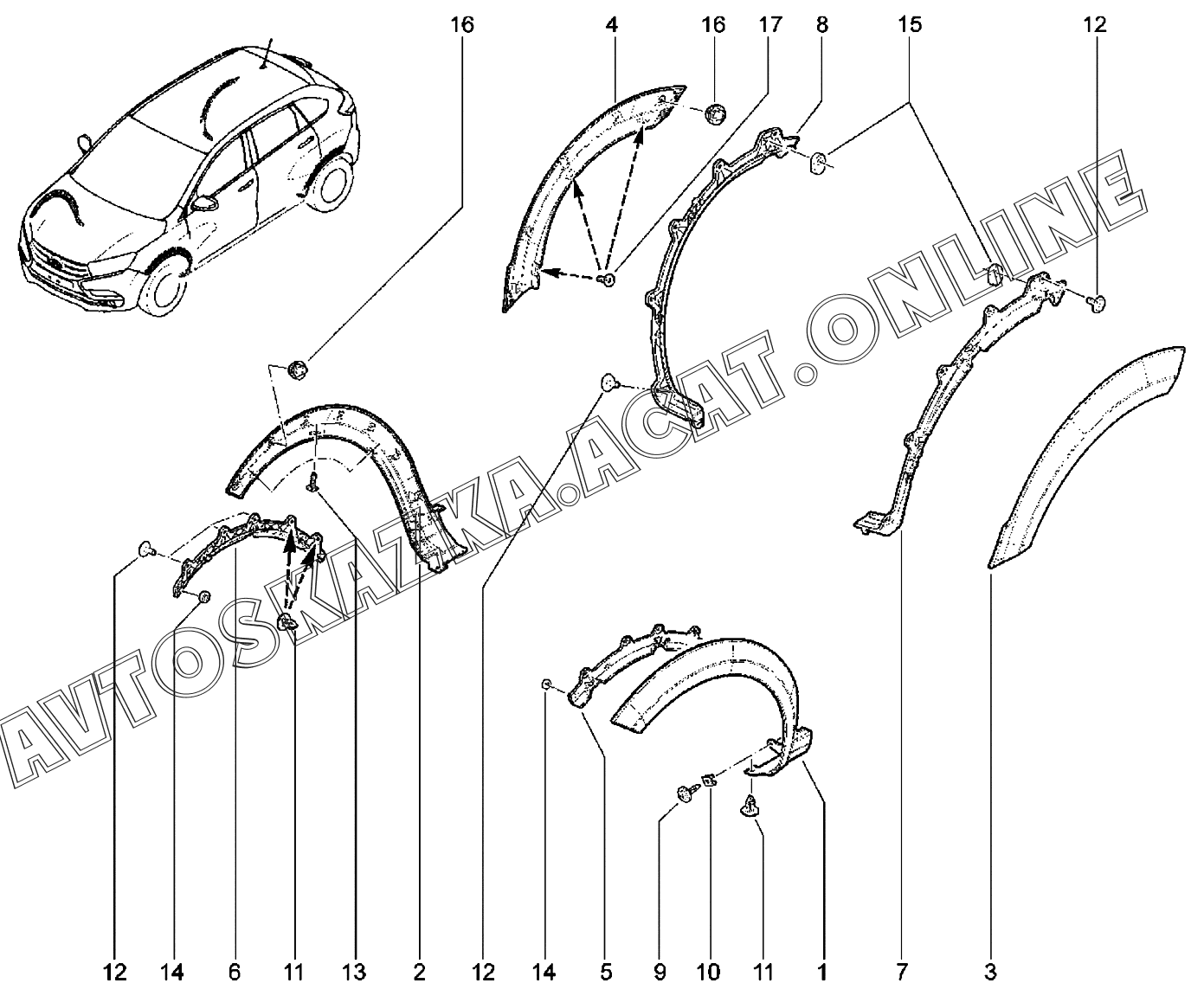 | Название детали: | Молдинг задней арки левый (в сборе с клипсами и двухсторонней липкой лентой) (тиснение) |