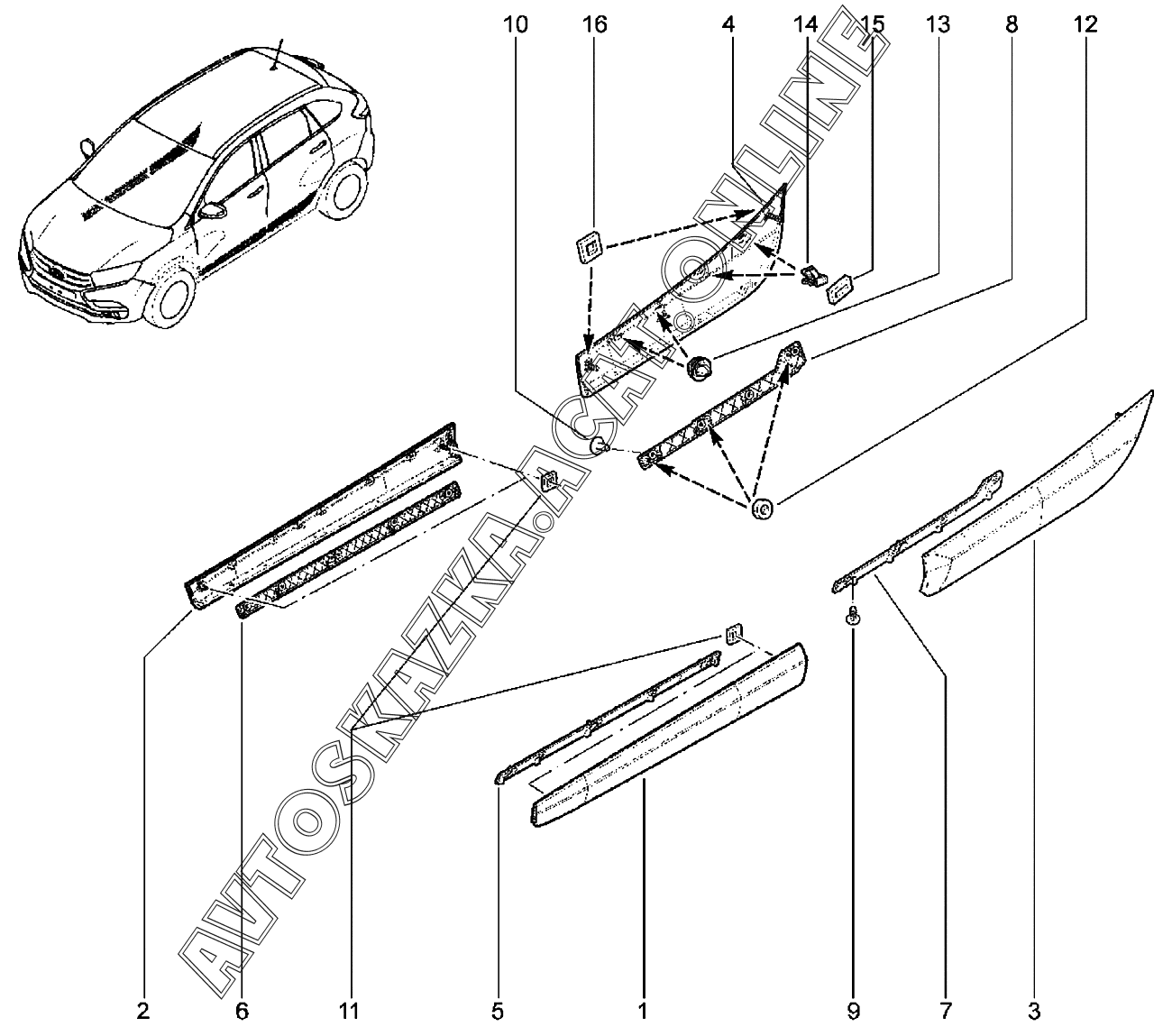 Молдинги дверей (Кросс) ВАЗ XRAY (Lada XRAY (хэтчбек, CROSS))