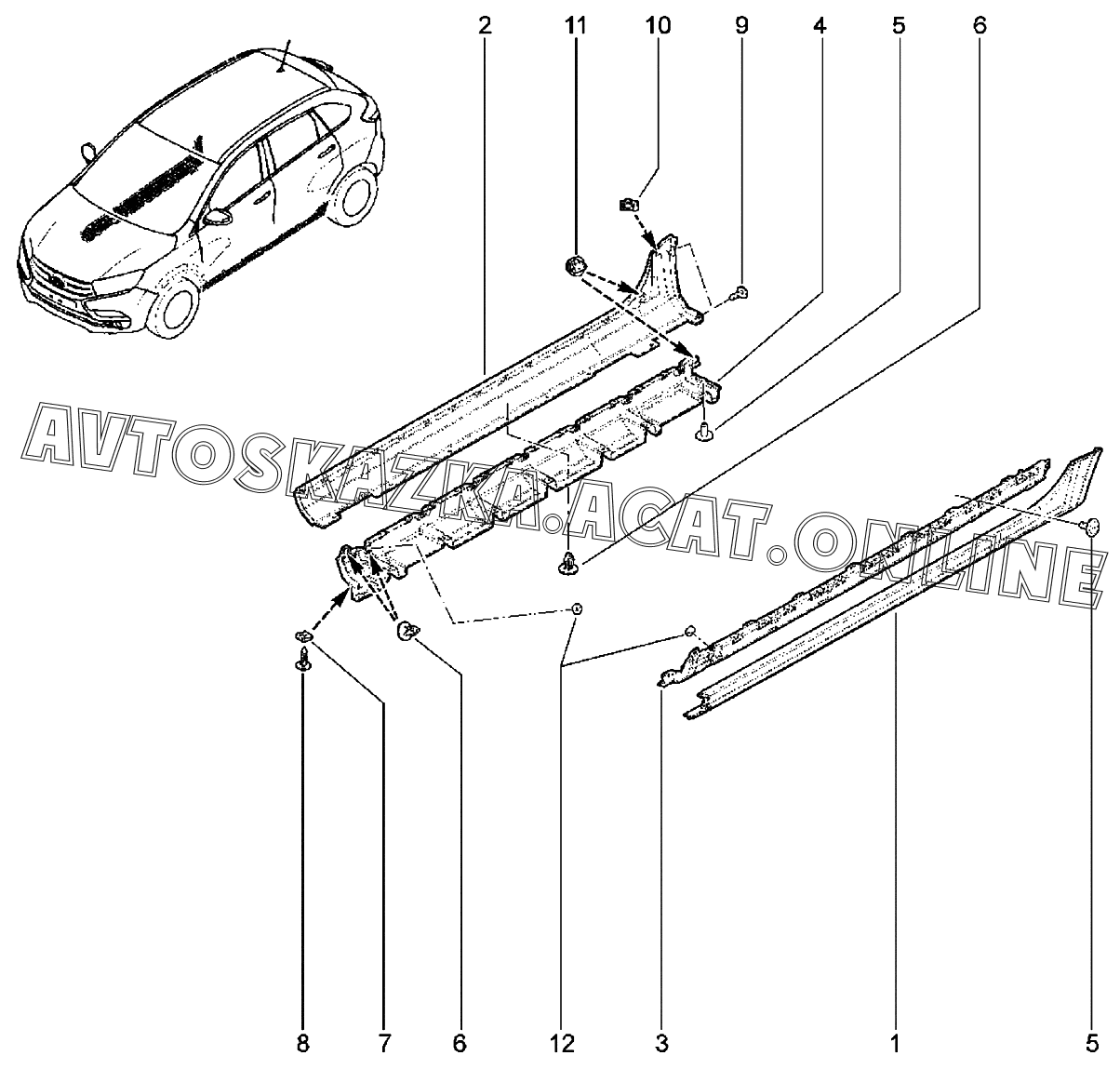 | Название детали: | Обтекатель порога правый в сборе с крепежом (тиснение) |