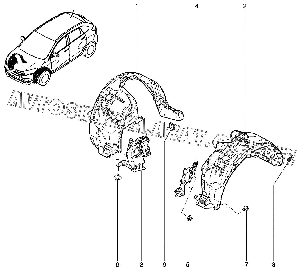 Щитки арок передних колес ВАЗ XRAY (Lada XRAY (хэтчбек, CROSS))