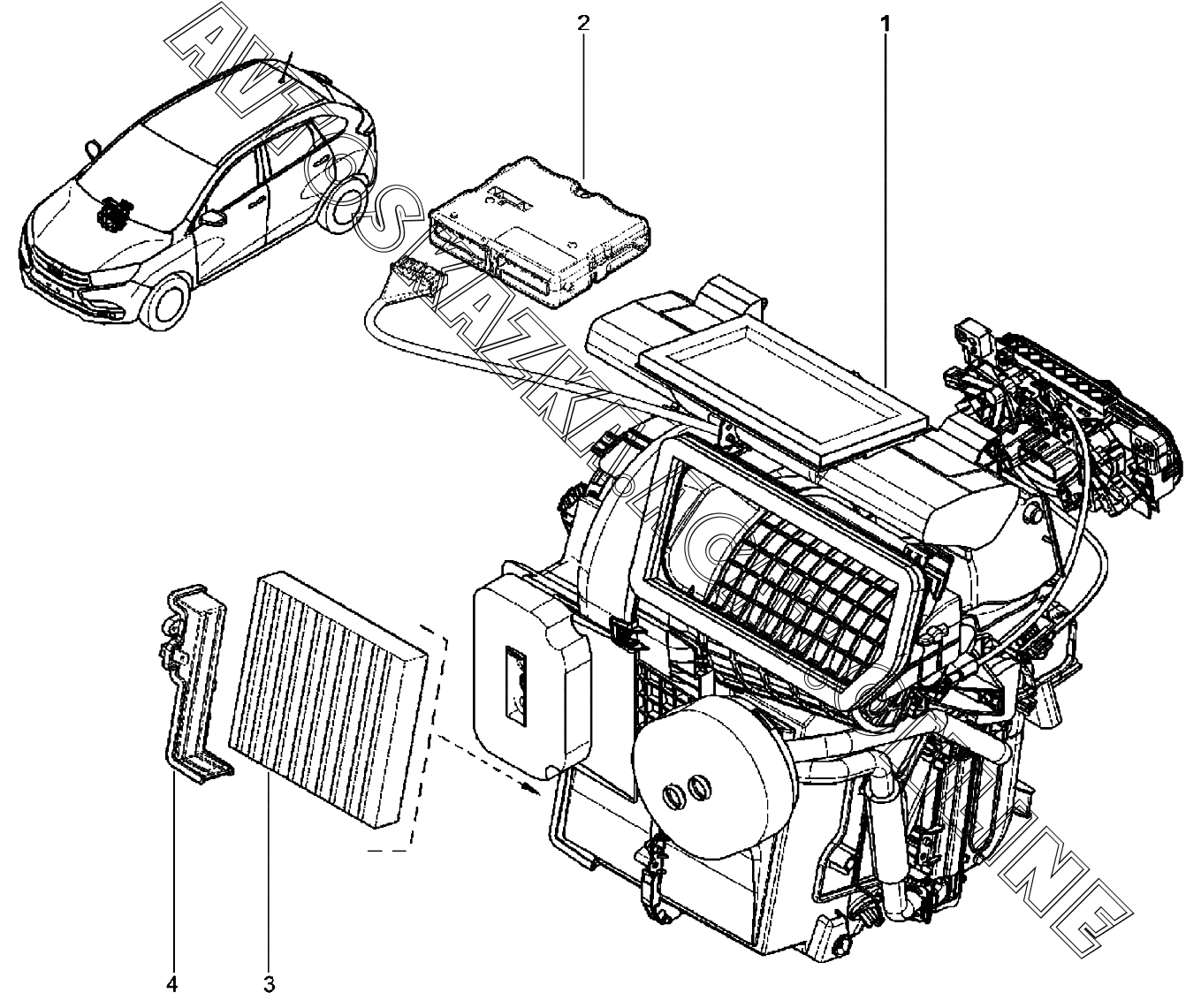 Отопитель в сборе (с КУ) ВАЗ XRAY (Lada XRAY (хэтчбек, CROSS))