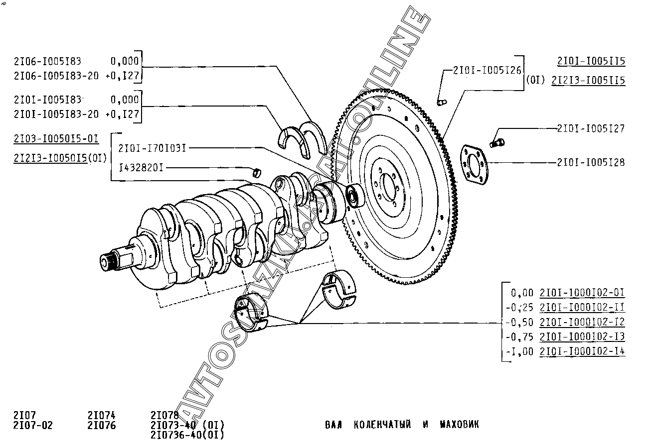 Вал коленчатый и маховик ВАЗ 2107 (2107-02, 21072, 21073-40, 210736-40, 21074, 21076, 21077, 21078)