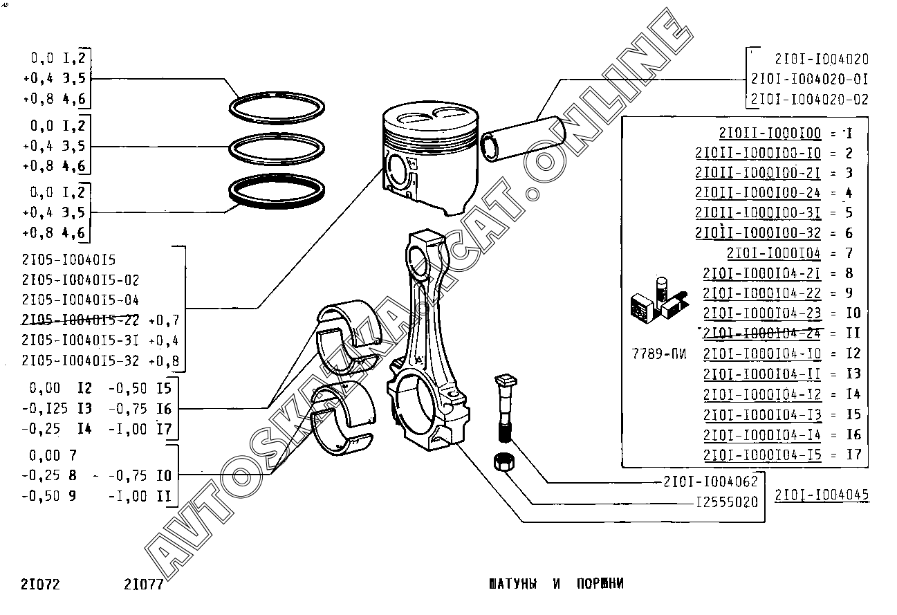 Шатуны и поршни ВАЗ 2107 (2107-02, 21072, 21073-40, 210736-40, 21074, 21076, 21077, 21078)