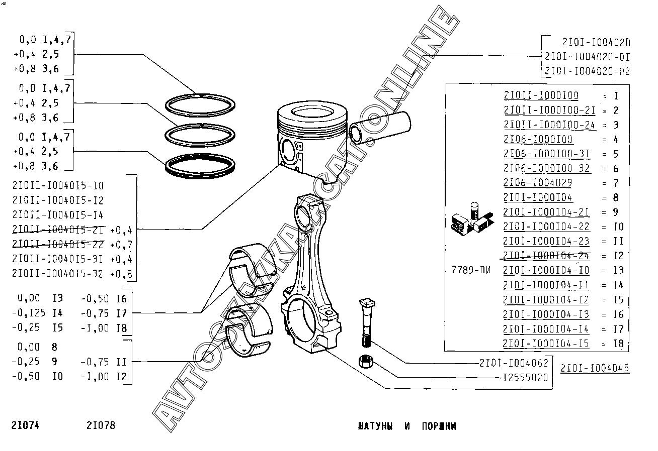 Шатуны и поршни ВАЗ 2107 (2107-02, 21072, 21073-40, 210736-40, 21074, 21076, 21077, 21078)