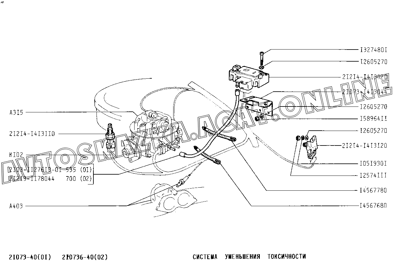 Система уменьшения токсичности ВАЗ 2107 (2107-02, 21072, 21073-40, 210736-40, 21074, 21076, 21077, 21078)