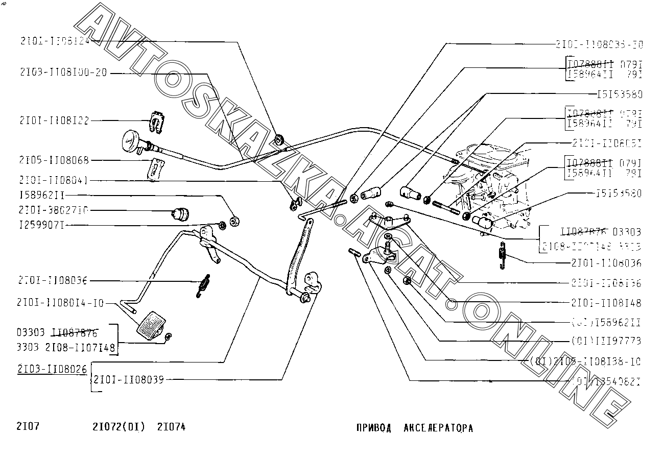 Привод акселератора ВАЗ 2107 (2107-02, 21072, 21073-40, 210736-40, 21074, 21076, 21077, 21078)