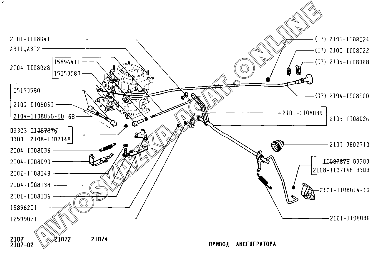 Привод акселератора ВАЗ 2107 (2107-02, 21072, 21073-40, 210736-40, 21074, 21076, 21077, 21078)