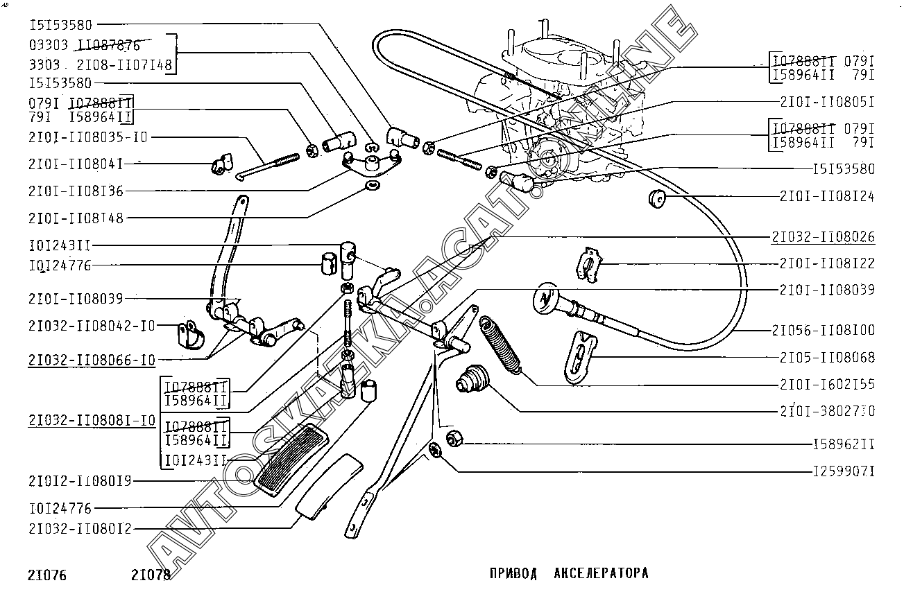 Привод акселератора ВАЗ 2107 (2107-02, 21072, 21073-40, 210736-40, 21074, 21076, 21077, 21078)