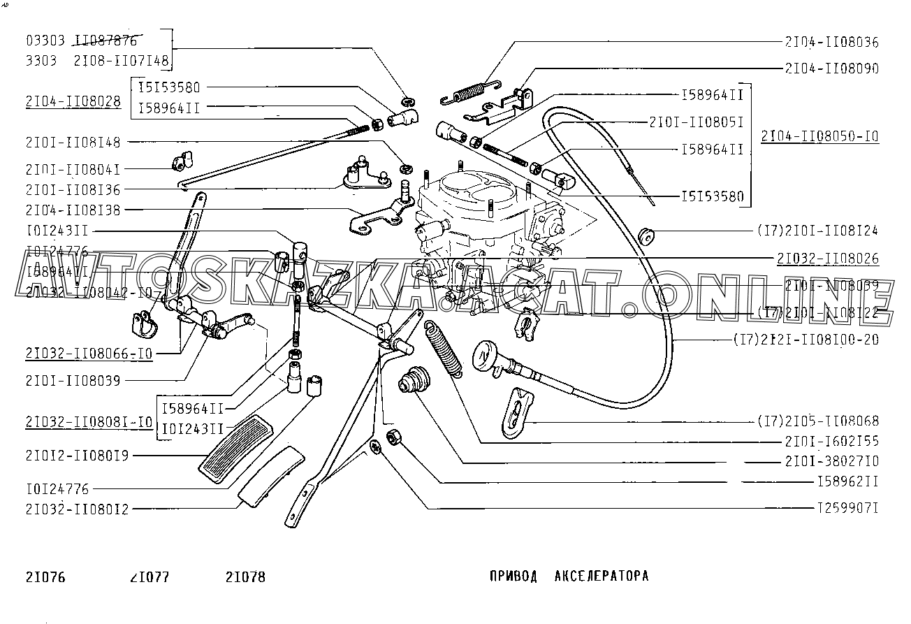 Привод акселератора ВАЗ 2107 (2107-02, 21072, 21073-40, 210736-40, 21074, 21076, 21077, 21078)