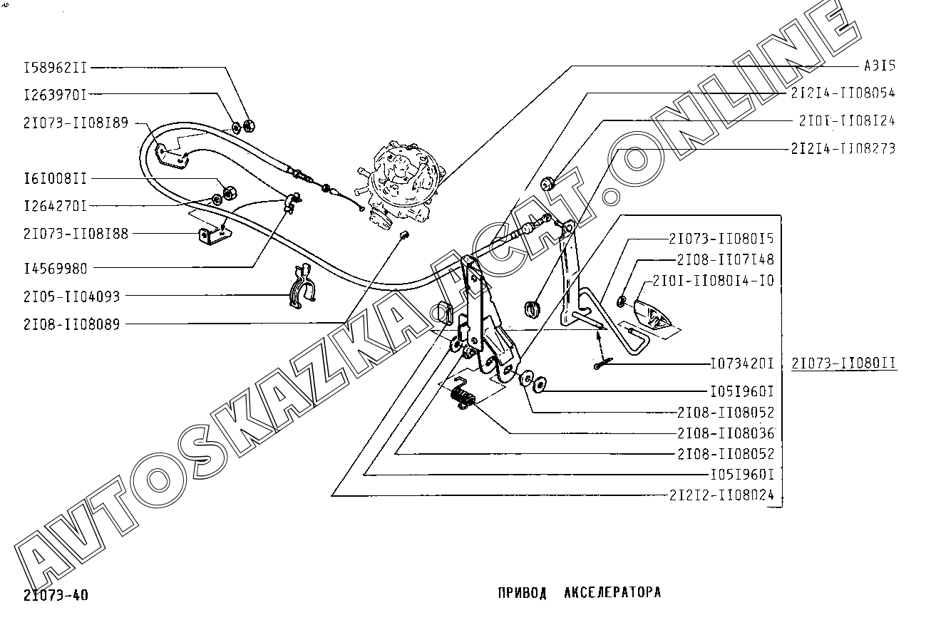 Привод акселератора ВАЗ 2107 (2107-02, 21072, 21073-40, 210736-40, 21074, 21076, 21077, 21078)