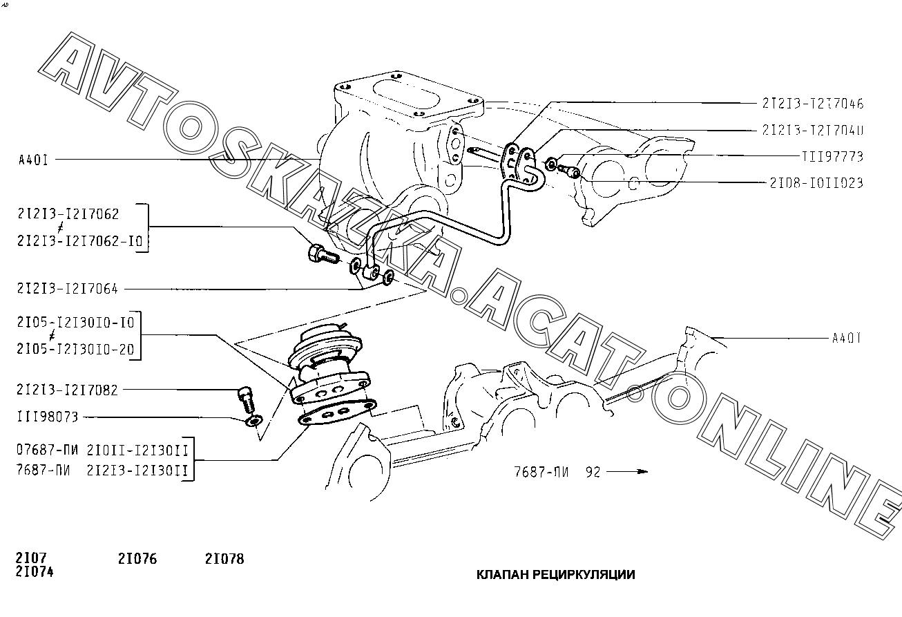 Клапан рециркуляции ВАЗ 2107 (2107-02, 21072, 21073-40, 210736-40, 21074, 21076, 21077, 21078)