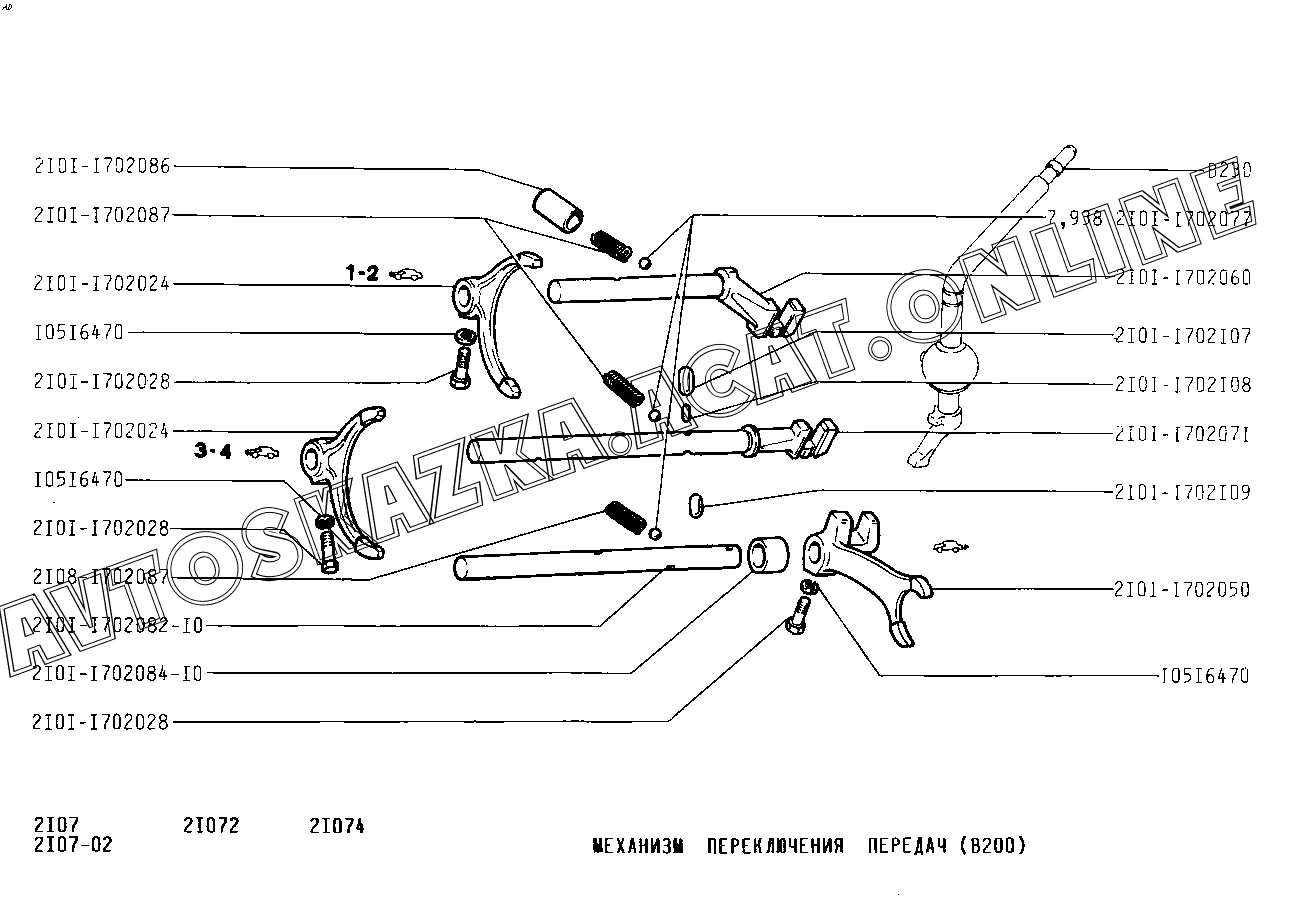 Механизм переключения передач ВАЗ 2107 (2107-02, 21072, 21073-40, 210736-40, 21074, 21076, 21077, 21078)