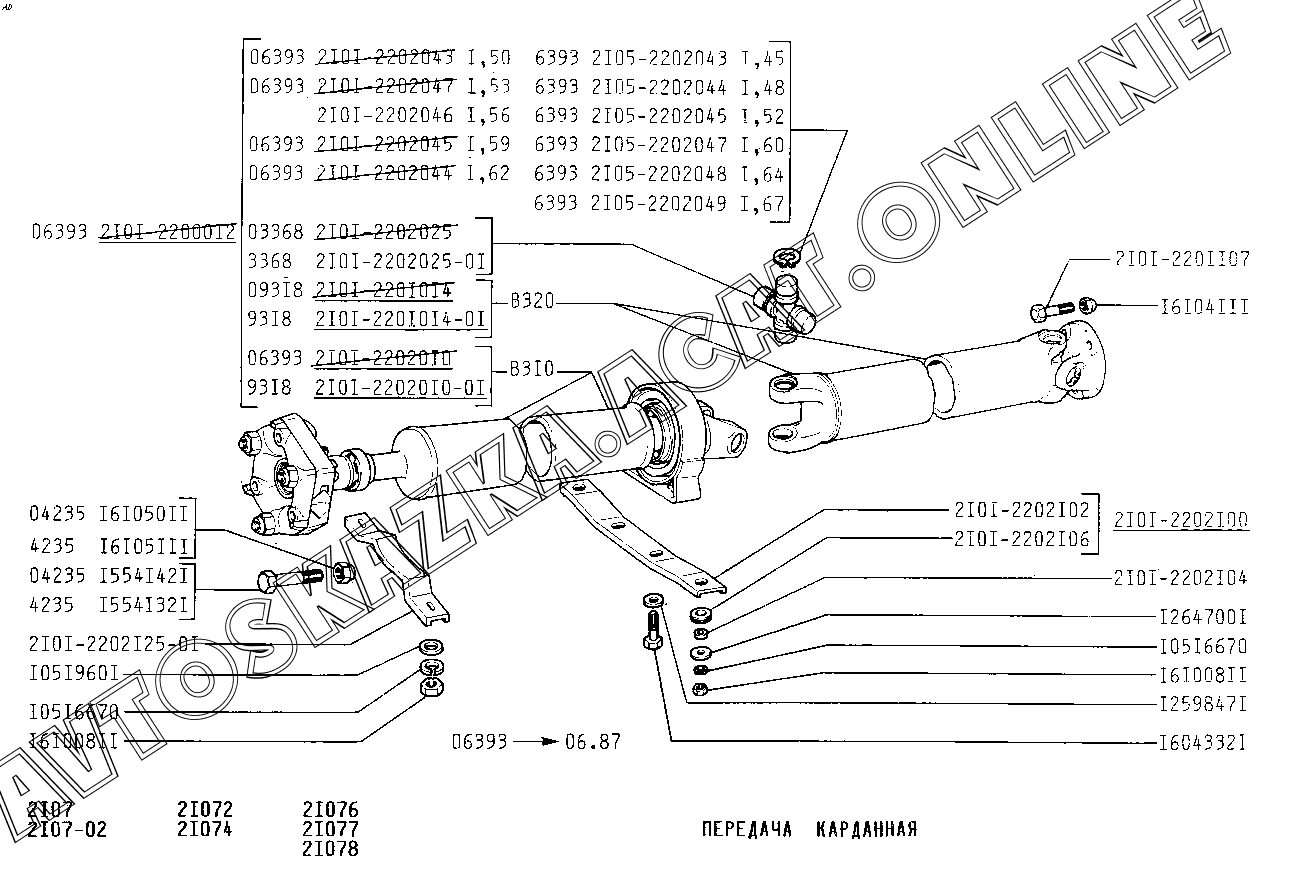 Передача карданная ВАЗ 2107 (2107-02, 21072, 21073-40, 210736-40, 21074, 21076, 21077, 21078)
