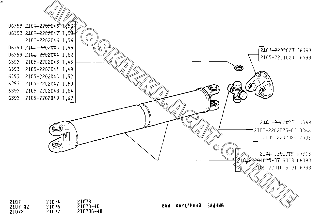Вал карданный задний ВАЗ 2107 (2107-02, 21072, 21073-40, 210736-40, 21074, 21076, 21077, 21078)