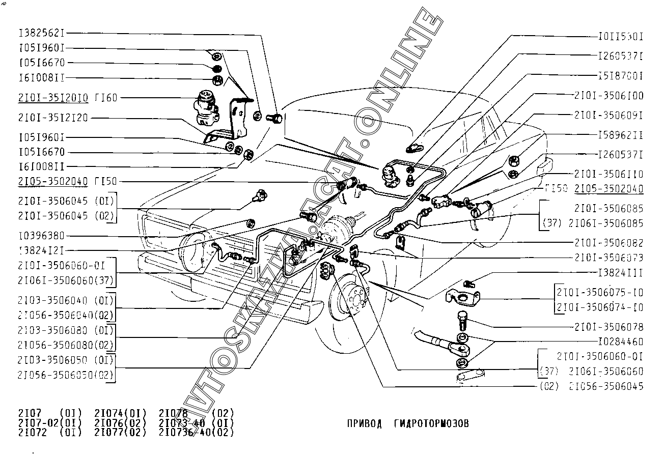 Привод гидротормозов ВАЗ 2107 (2107-02, 21072, 21073-40, 210736-40, 21074, 21076, 21077, 21078)