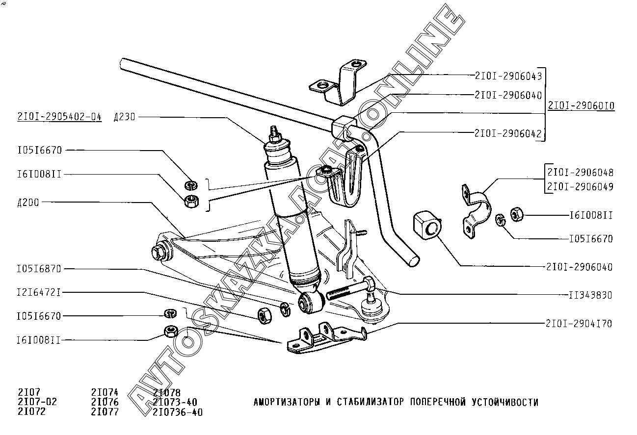 Амортизаторы и стабилизатор поперечной устойчивочти ВАЗ 2107 (2107-02, 21072, 21073-40, 210736-40, 21074, 21076, 21077, 21078)