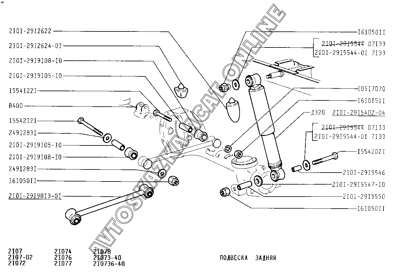 Подвеска задняя ВАЗ 2107 (2107-02, 21072, 21073-40, 210736-40, 21074, 21076, 21077, 21078)
