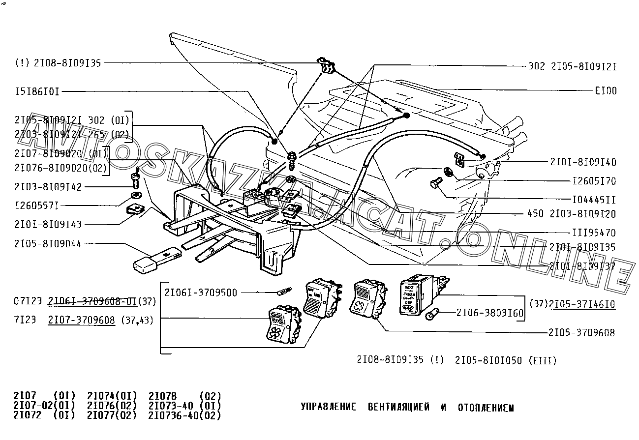 Управлением вентиляцией и отоплением ВАЗ 2107 (2107-02, 21072, 21073-40, 210736-40, 21074, 21076, 21077, 21078)