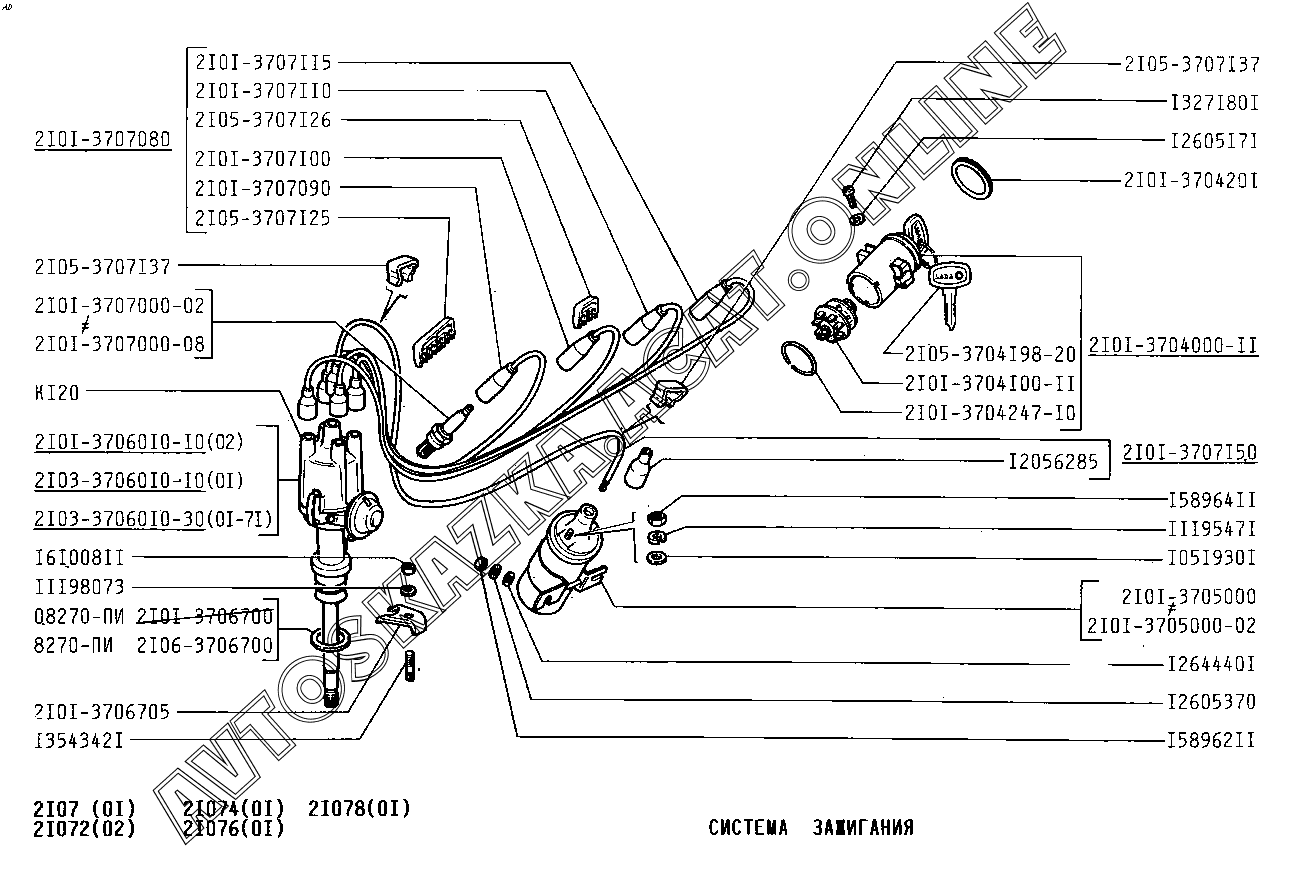 Система зажигания ВАЗ 2107 (2107-02, 21072, 21073-40, 210736-40, 21074, 21076, 21077, 21078)