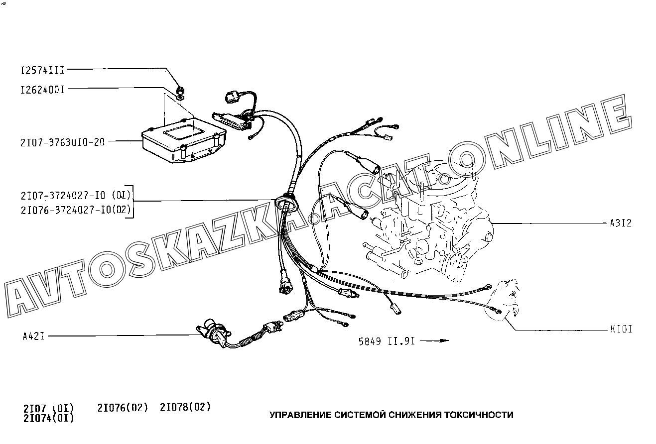 Управление системой снижения токсичности ВАЗ 2107 (2107-02, 21072, 21073-40, 210736-40, 21074, 21076, 21077, 21078)