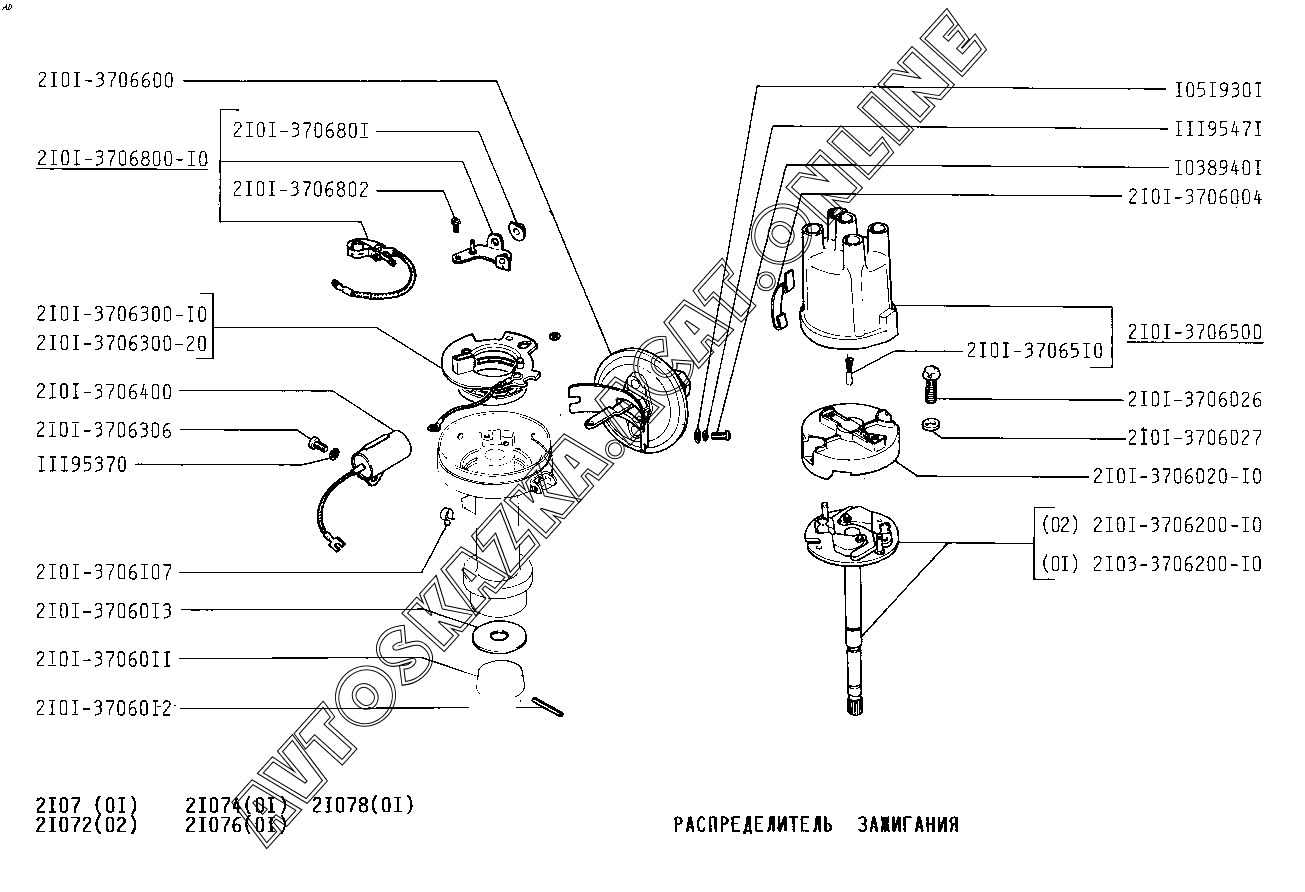 Распеределитель зажигания ВАЗ 2107 (2107-02, 21072, 21073-40, 210736-40, 21074, 21076, 21077, 21078)