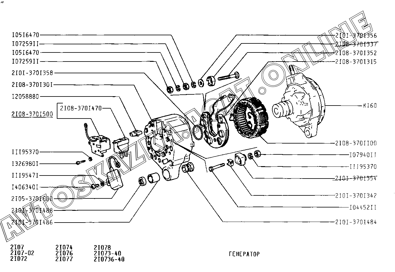 Генератор ВАЗ 2107 (2107-02, 21072, 21073-40, 210736-40, 21074, 21076, 21077, 21078)