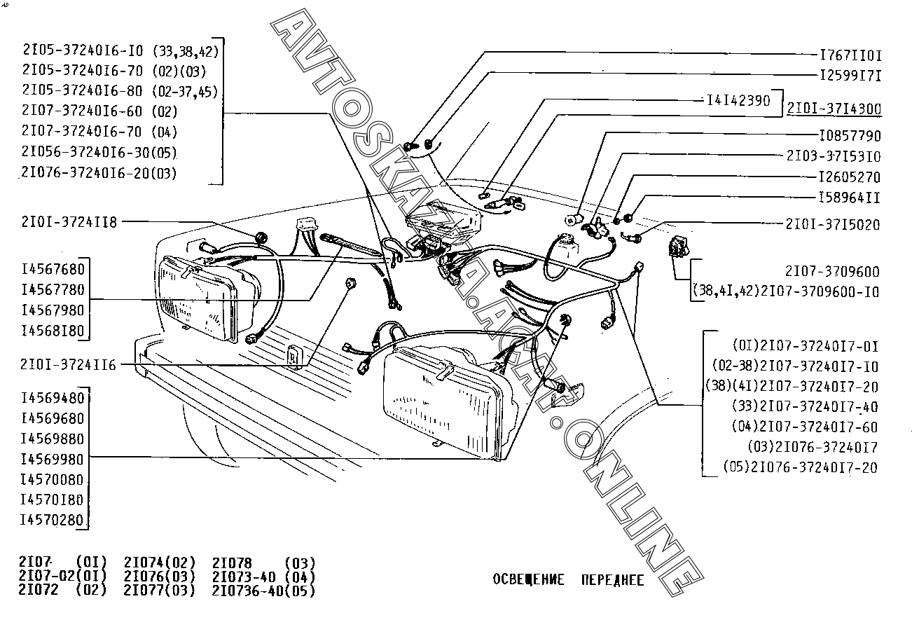Освещение переднее ВАЗ 2107 (2107-02, 21072, 21073-40, 210736-40, 21074, 21076, 21077, 21078)