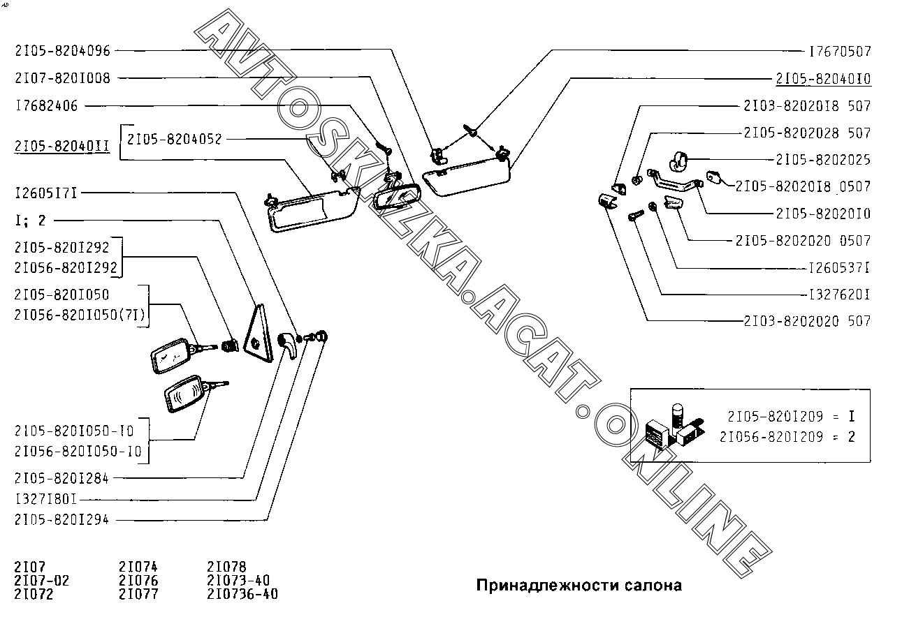 Принадлежности салона ВАЗ 2107 (2107-02, 21072, 21073-40, 210736-40, 21074, 21076, 21077, 21078)