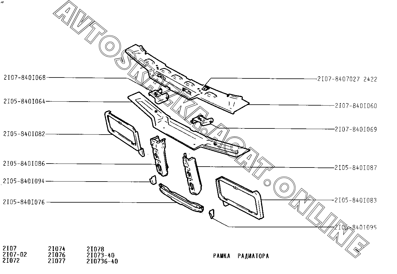 Рамка радиатора ВАЗ 2107 (2107-02, 21072, 21073-40, 210736-40, 21074, 21076, 21077, 21078)