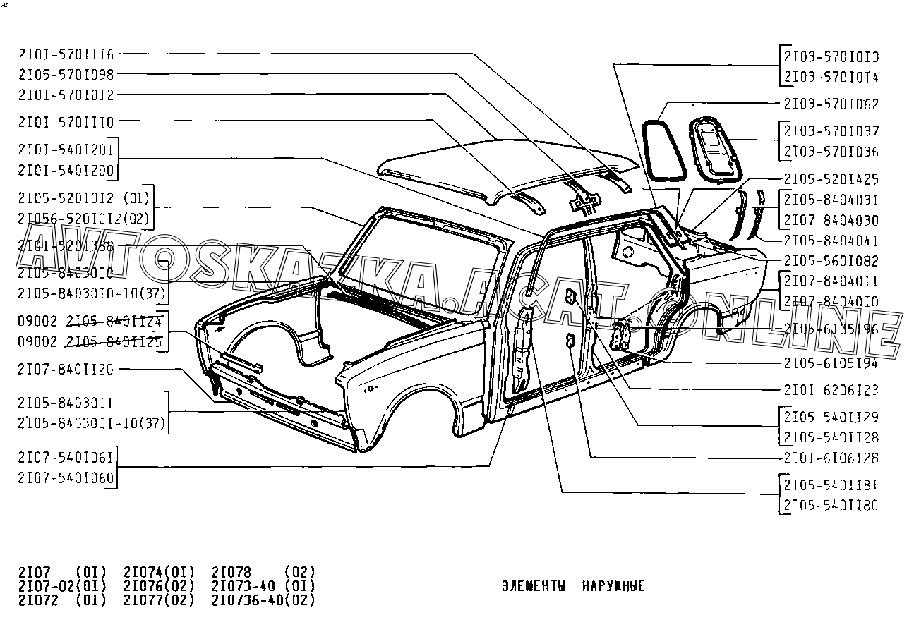 Элементы наружные ВАЗ 2107 (2107-02, 21072, 21073-40, 210736-40, 21074, 21076, 21077, 21078)