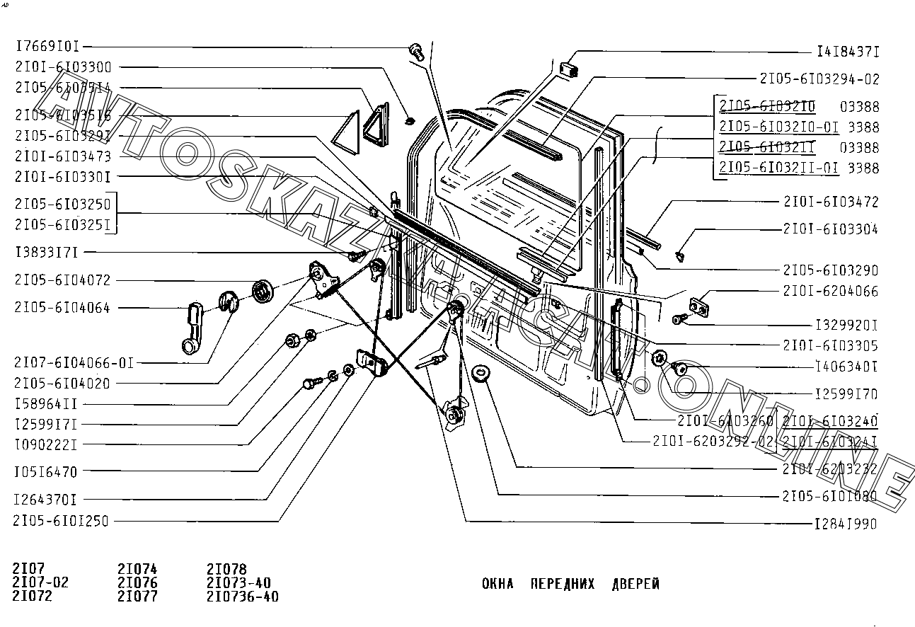 Окна передних дверей ВАЗ 2107 (2107-02, 21072, 21073-40, 210736-40, 21074, 21076, 21077, 21078)
