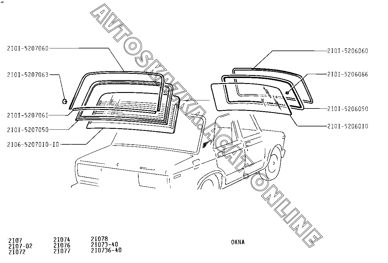 Окна ВАЗ 2107 (2107-02, 21072, 21073-40, 210736-40, 21074, 21076, 21077, 21078)